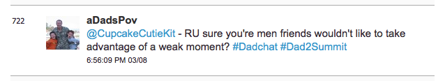I was really dismayed and frustrated to read the transcript of this week’s #DadChat, a weekly Twitter chat about being a dad. I’ve followed the chat for a while, yet almost never take part, but it’s one of the hash tags I follow out of general interest. The host seems to be a good person trying to create real and positive momentum for fatherhood. Yesterday’s topic wasn’t about being a dad, but more about being a man.
